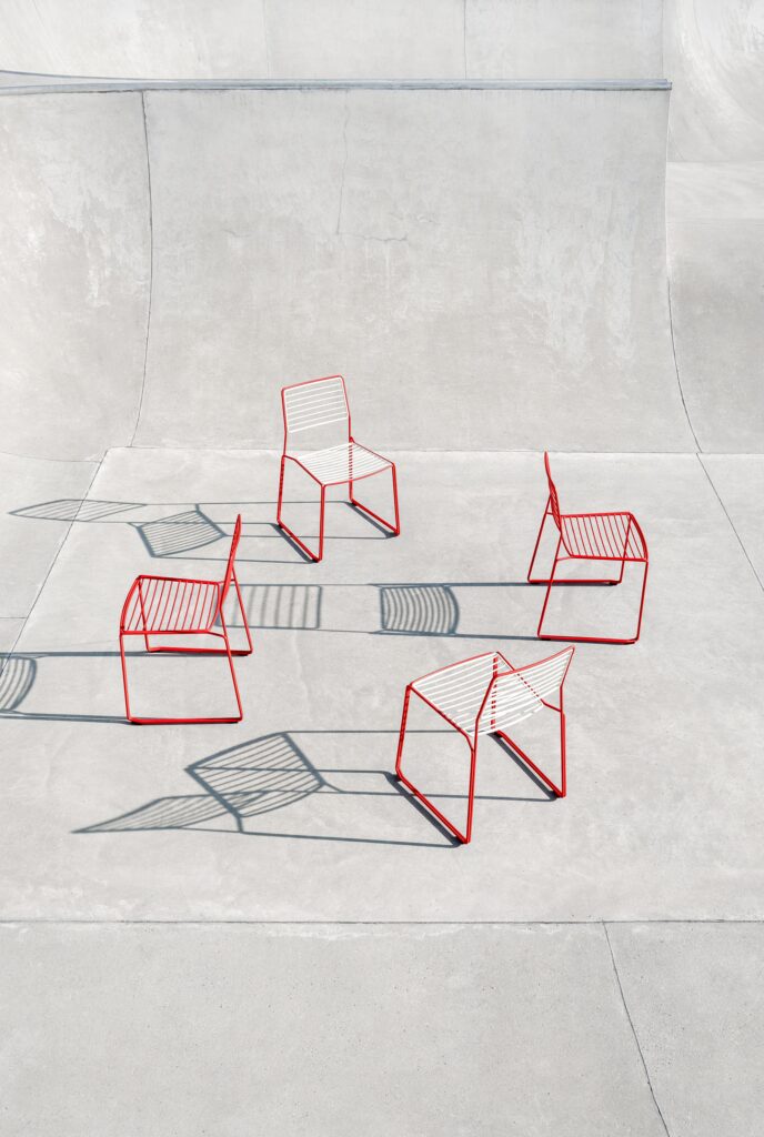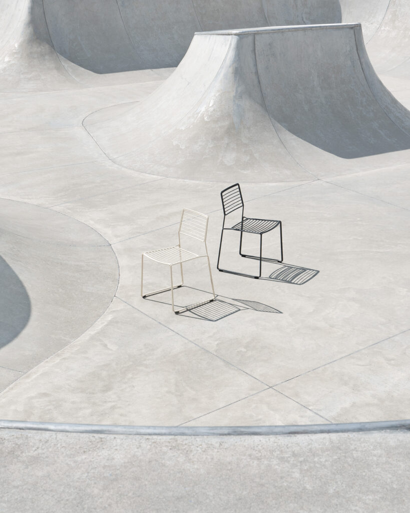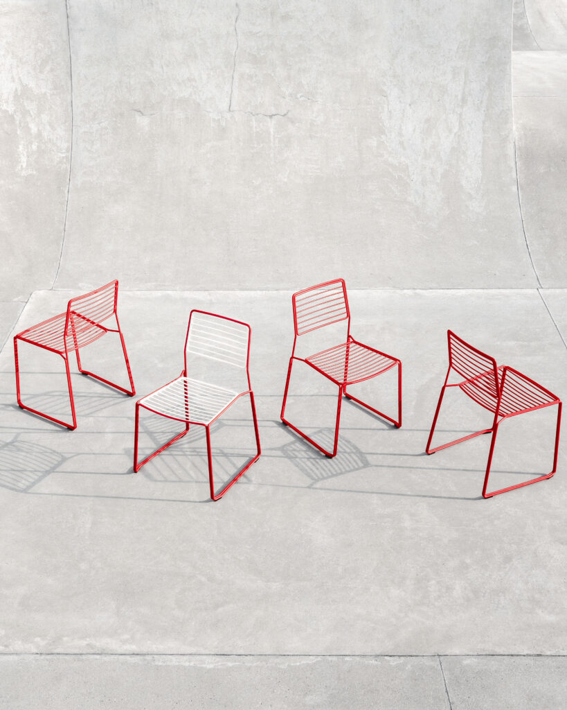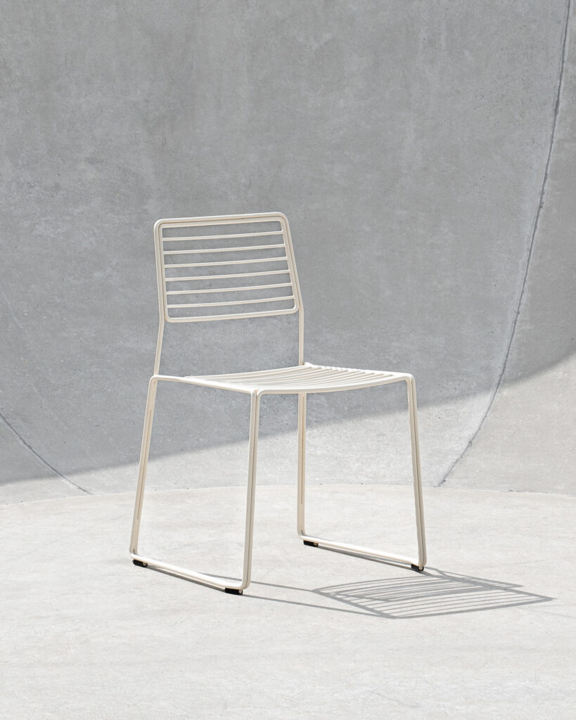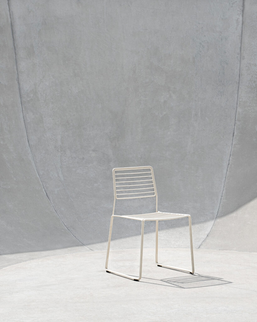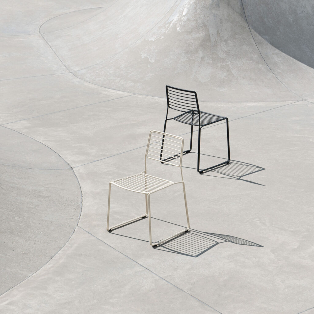 The Twain chair is the outdoor steel wire dining chair. Assembled from individual elements such as the seat, backrest, and the frame, the Twain chair highlights the parallelism of the steel wire, which is an art in terms of the manufacturing process, and emphasizes the lines following each other. The Twain chair is carefully designed to ensure the best ergonomic comfort and precisely made of galvanized steel treated with an outdoor powder coating for everyday functionality. The chair is stackable up to four pieces.