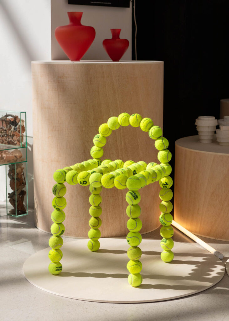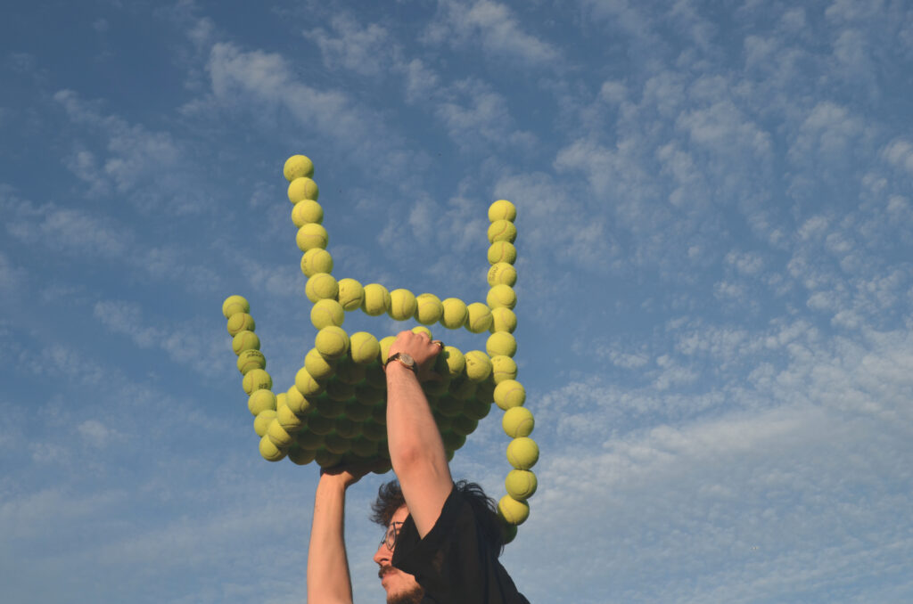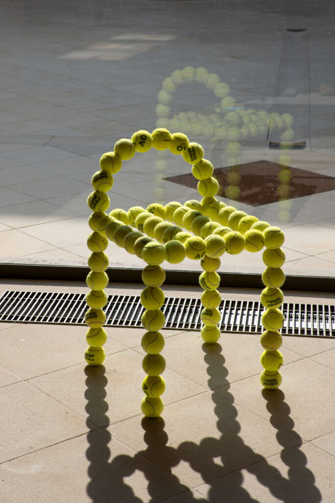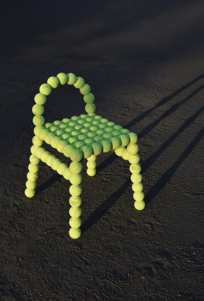 I created the Tennis Chair object to spark a discussion about the life cycle of short-lived objects. What happens to things that only serve us for pleasure for a few hours and then lose their purpose? And why do we make and use them in the first place? Can we transform end-of-life products into meaningful and functional tools? Can we teach or even expect the average citizen to reuse their no longer used items in a creative way?